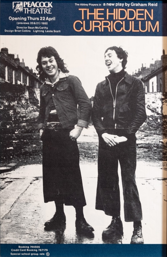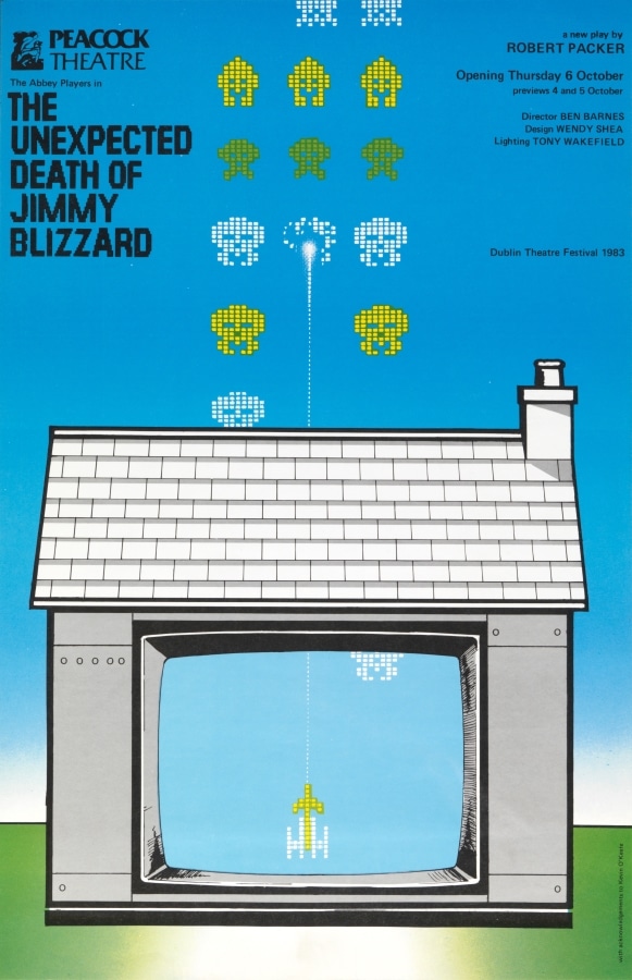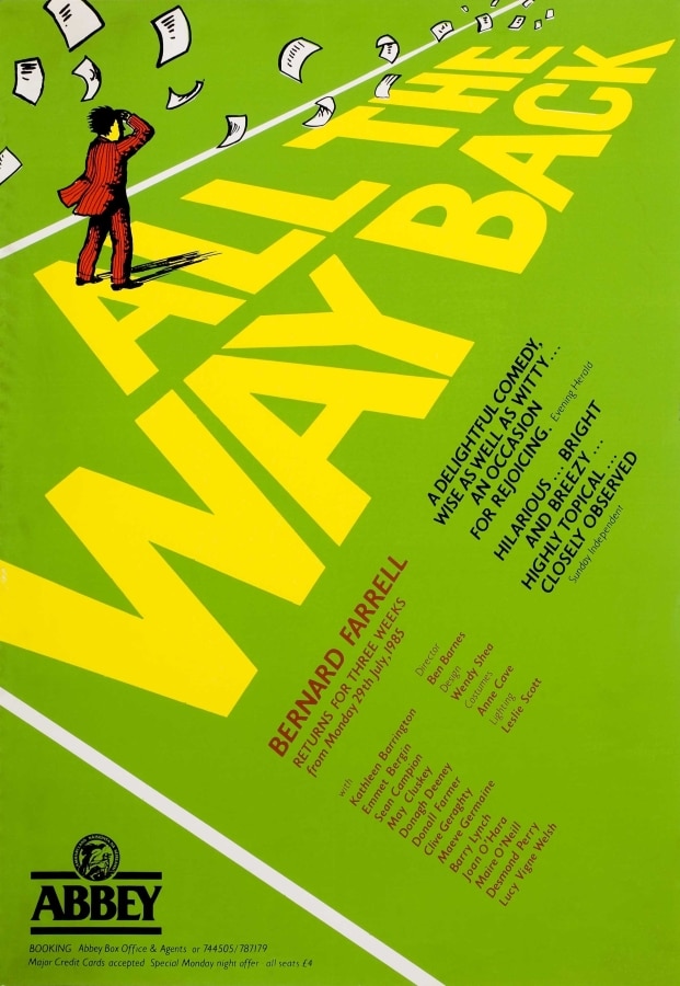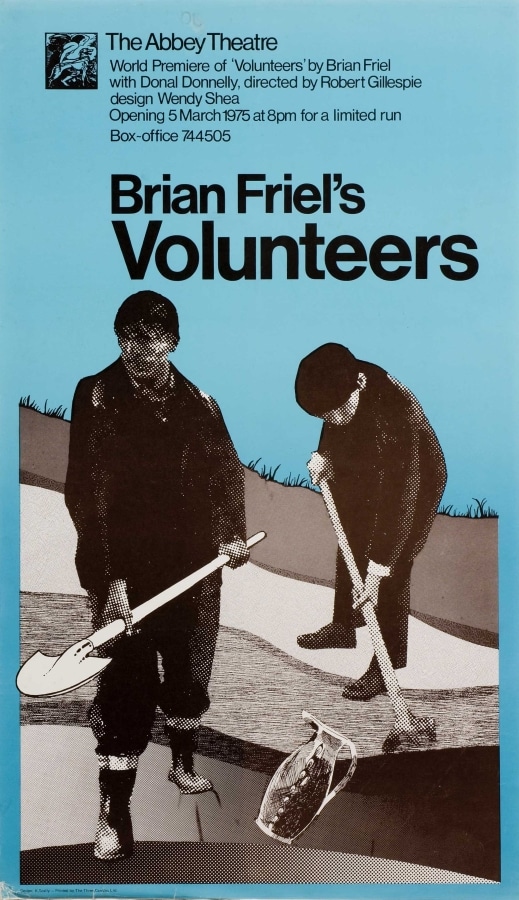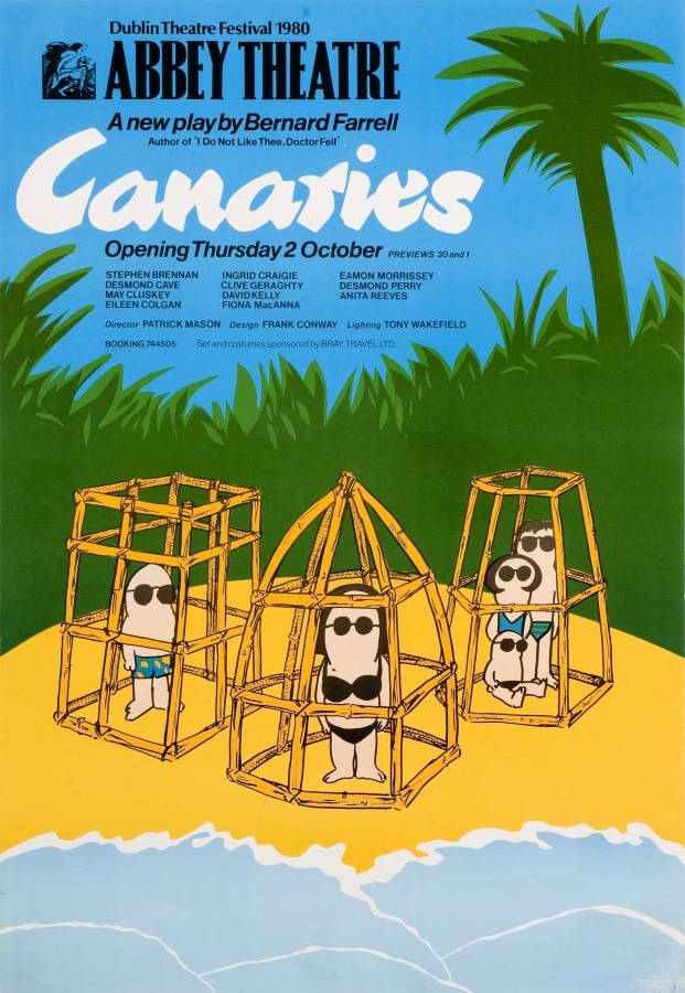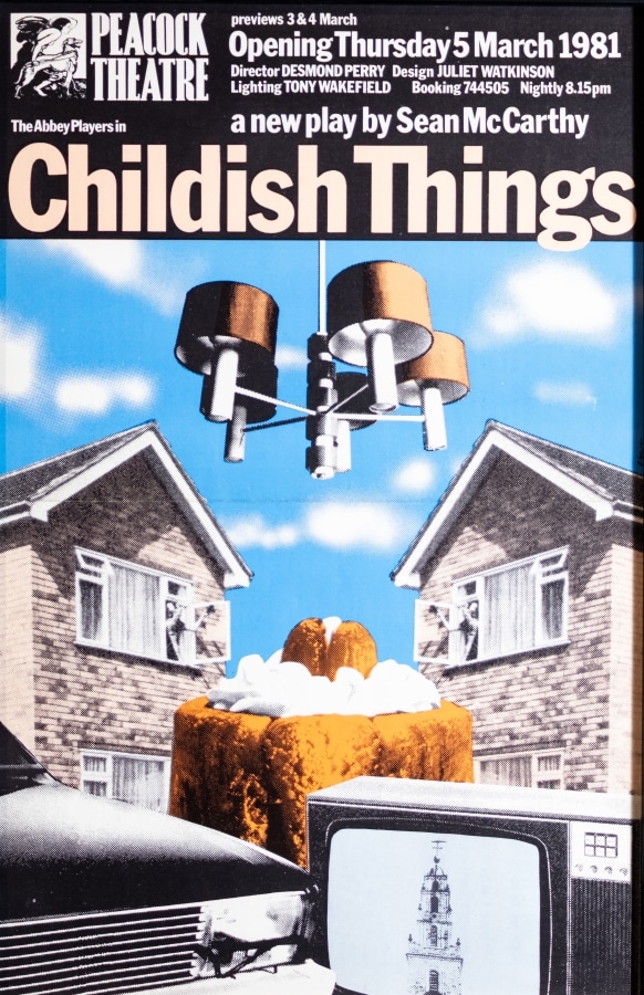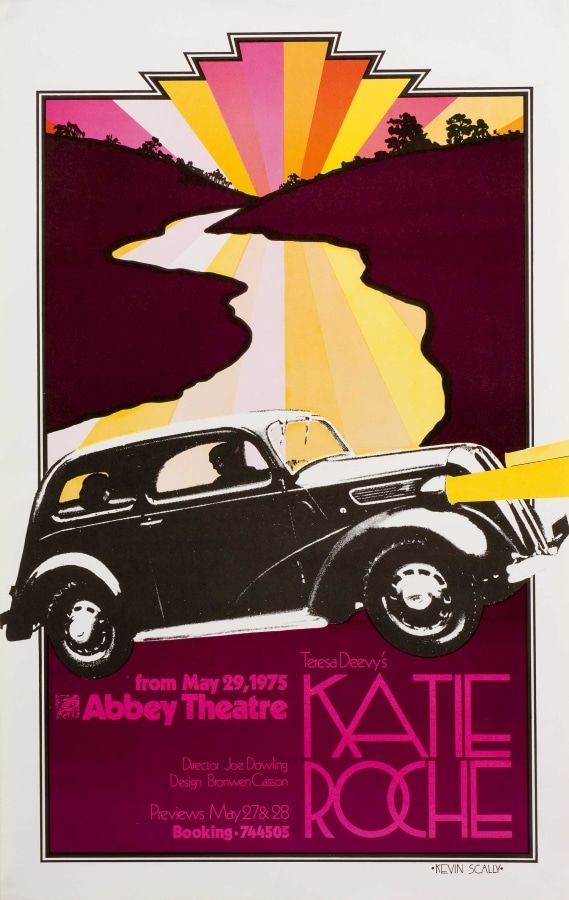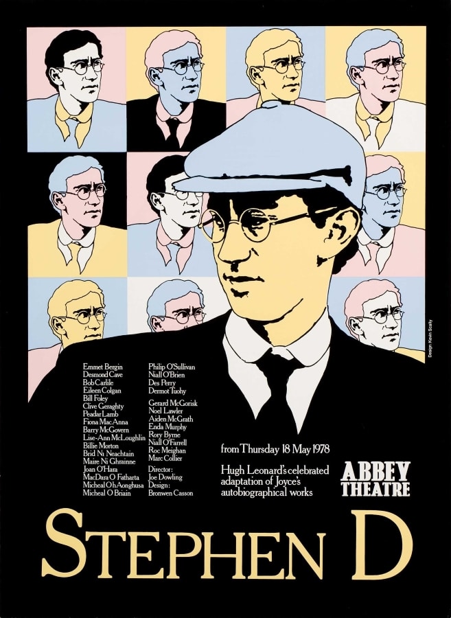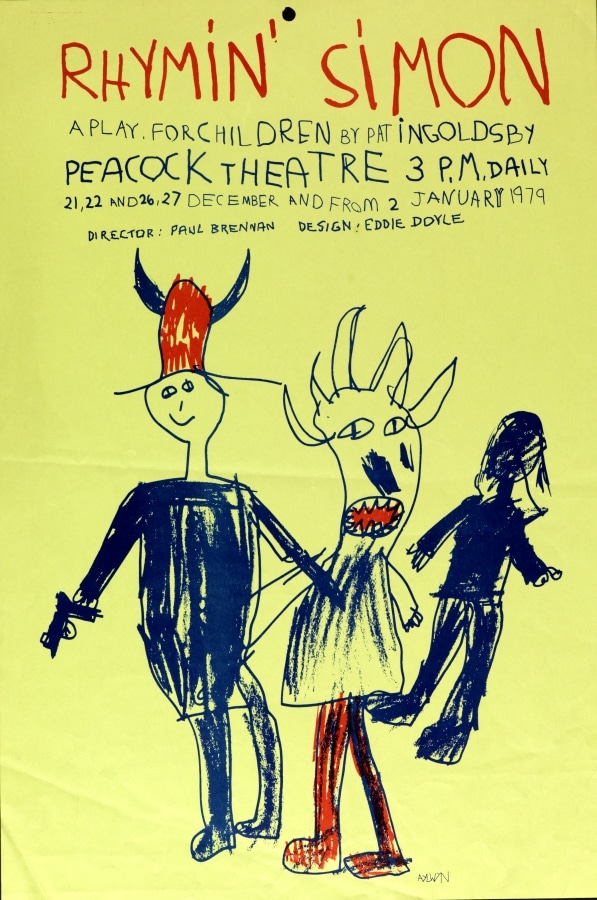 The ‘new’ Abbey opened in 1966. Glass cases were incorporated into the façade for the display of posters and photographs. At the time, posters were typically hand-written notices or letterpress playbills and these were strictly informative. In 1970s, the Abbey embraced contemporary advertising strategies, employing its first in-house graphic designer in 1972: Kevin Scally. Brendan Foreman succeeded Scally in late 1979. Collectively, their work demonstrates a vast array of visual styles and approaches.