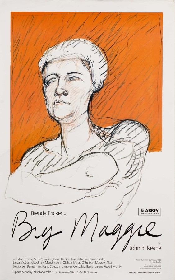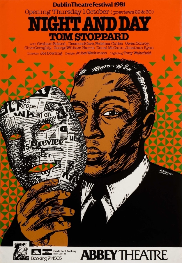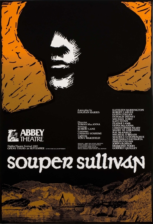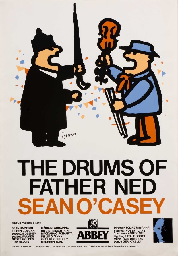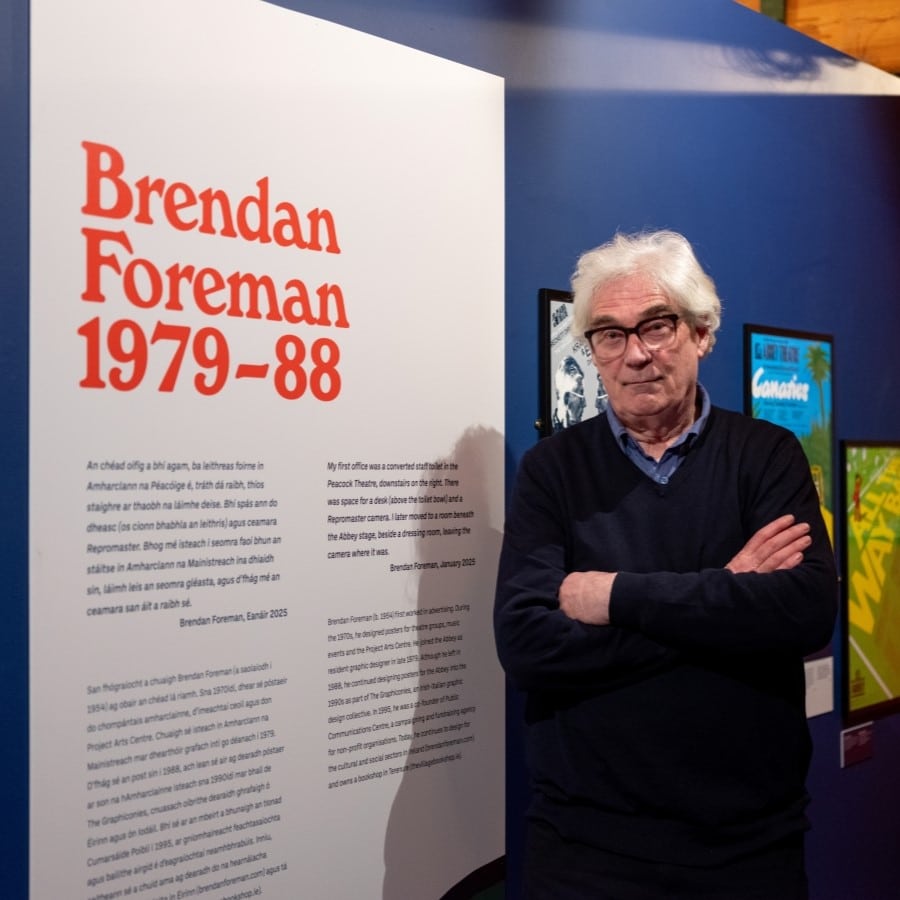 Brendan Foreman (b. 1954) first worked in advertising. During the 1970s, he designed posters for theatre groups, music events and the Project Arts Centre. He joined the Abbey as resident graphic designer in late 1979. Although he left in 1988, he continued designing posters for the Abbey into the 1990s as part of The Graphiconies, an Irish-Italian graphic design collective. In 1995, he was a co-founder of Public Communications Centre, a campaigning and fundraising agency for non-profit organisations. Today, he continues to design for the cultural and social sectors in Ireland (brendanforeman.com) and owns a bookshop in Terenure (thevillagebookshop.ie).