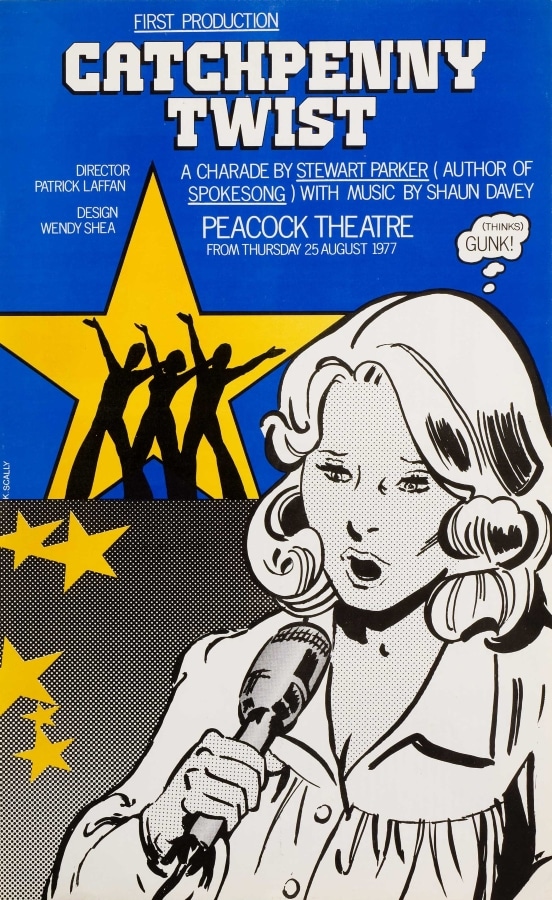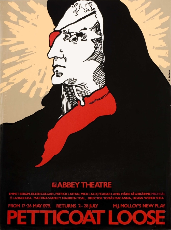 Scally (b. 1952) studied art at the Crawford School of Art, Cork, and graphic design at the (then) National College of Art, Dublin. His interest in theatre graphics developed through performing with the Cork Shakespeare Company. He was the graphic designer for the Abbey from 1972 until 1979. He then moved to London as graphic designer for the English National Opera. This was followed by work for the National Theatre, the Royal Opera and the Royal Shakespeare Company. On returning to Ireland in 1990, he designed posters for the Gate Theatre and various theatre companies, including Pigsback. His observation of the effects of copyright law on creative work led him to a PhD in intellectual property and a lecturing position at University College, Cork from 2006 until 2017.